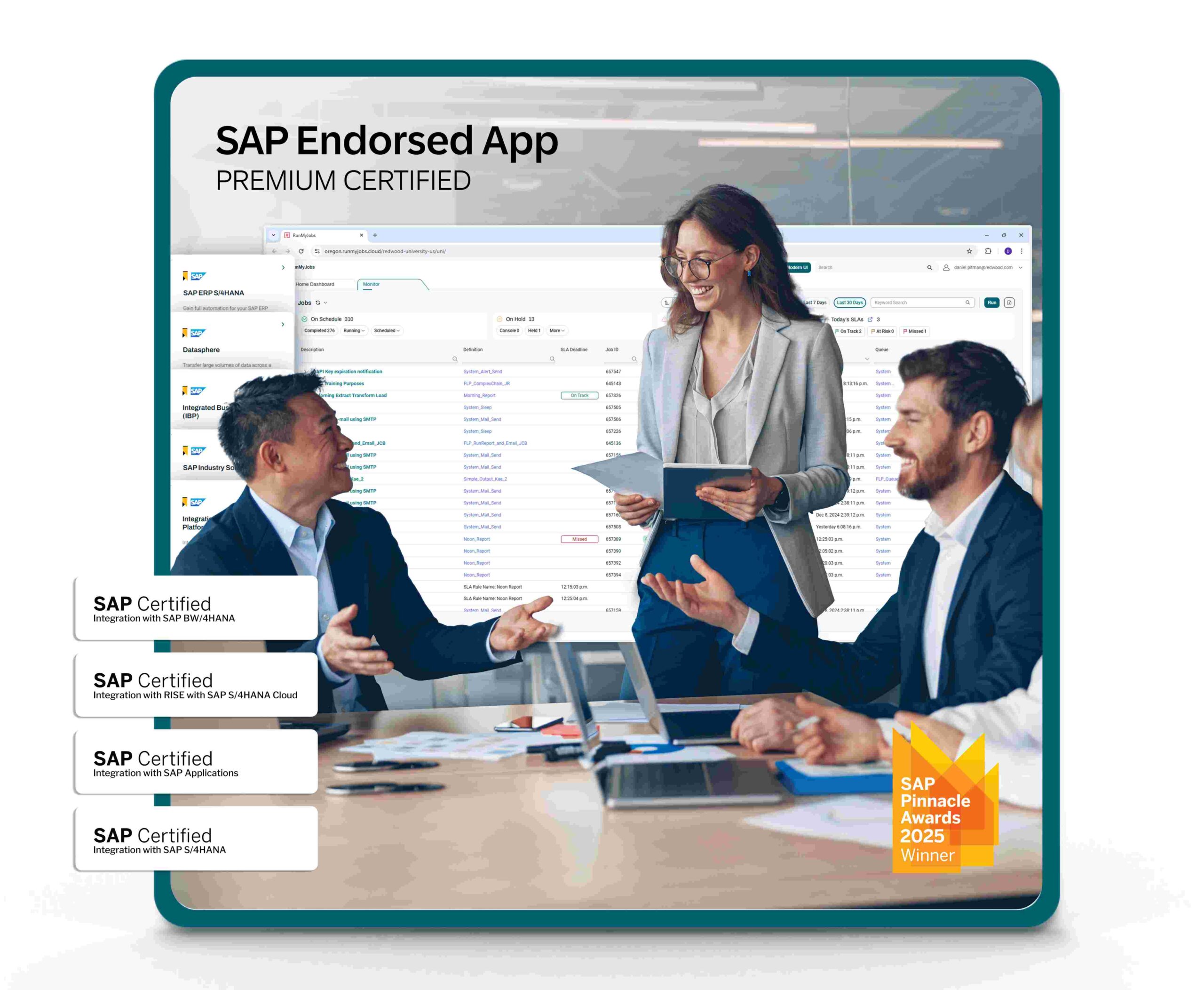 RunMyJobs is the only workload automation platform that is both a Premium certified SAP Endorsed App and included in the RISE with SAP reference architecture, through managed services offered and delivered by SAP Enterprise Cloud Services (ECS). Connect the backbone of your business (ERP) to your entire tech stack with the industry’s deepest and broadest integrations for SAP and Oracle and orchestrate all your business and IT processes in one powerful, centralized platform.