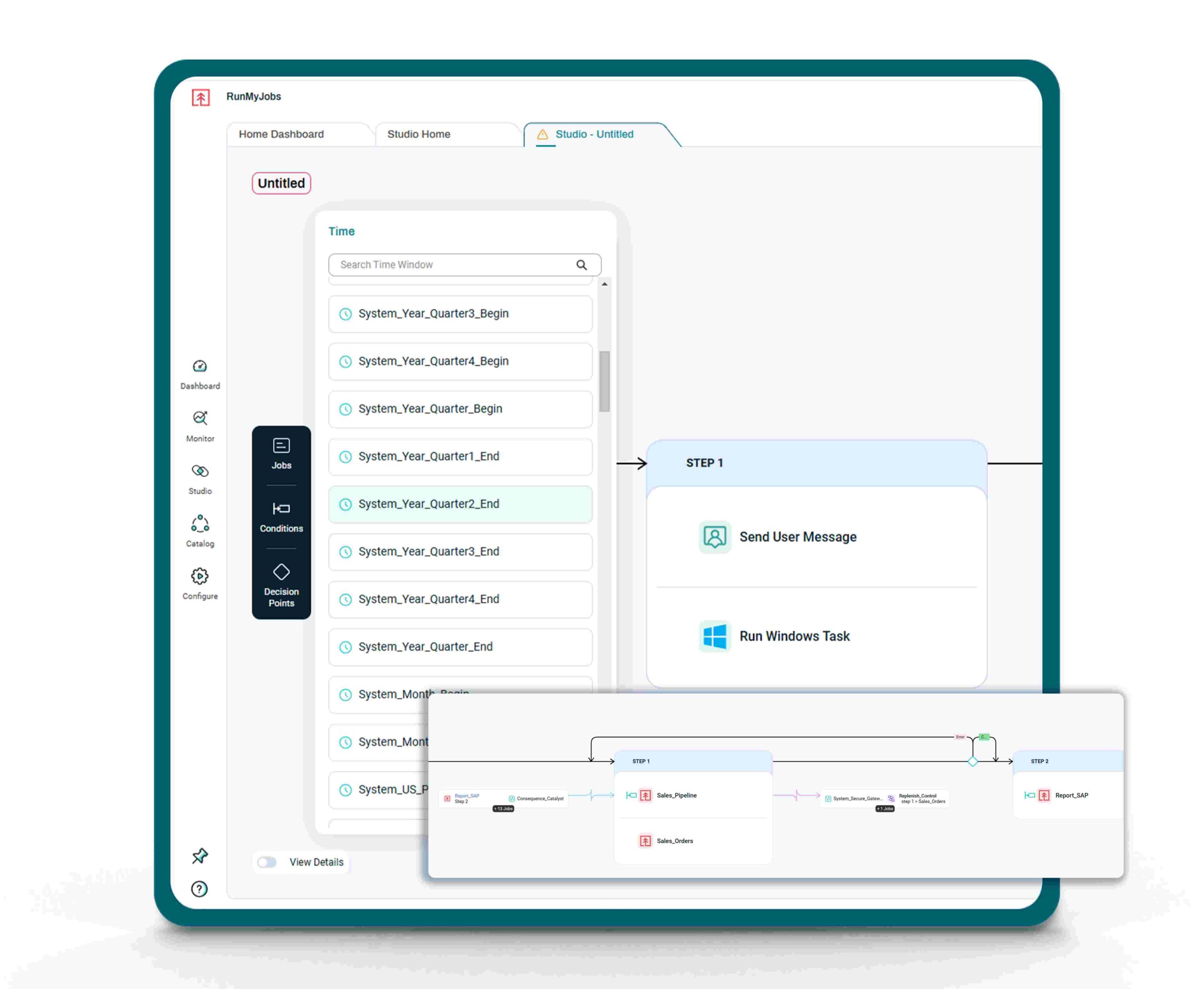 Automate repetitive tasks with low-code/no-code job steps and pre-built calendars. Experience unlimited system connectivity on-prem or in the cloud.