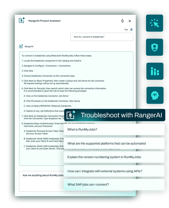Build faster, troubleshoot in seconds and document workflows automatically with secure, integrated AI assistants purpose-built for automation.