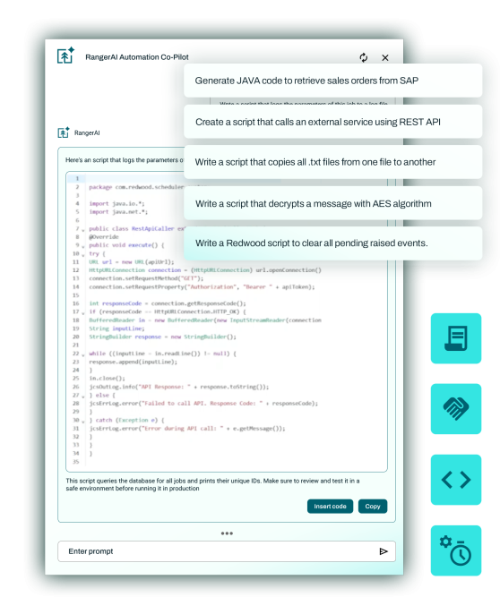 Introducing RangerAI for RunMyJobs. We're accelerating the platform you already trust with practical, secure and integrated generative AI. It’s our direct response to your biggest daily challenges — embedding intelligent assistants and co-pilots to help your team build faster, learn quicker and solve problems instantly. Access Redwood RangerAI today.